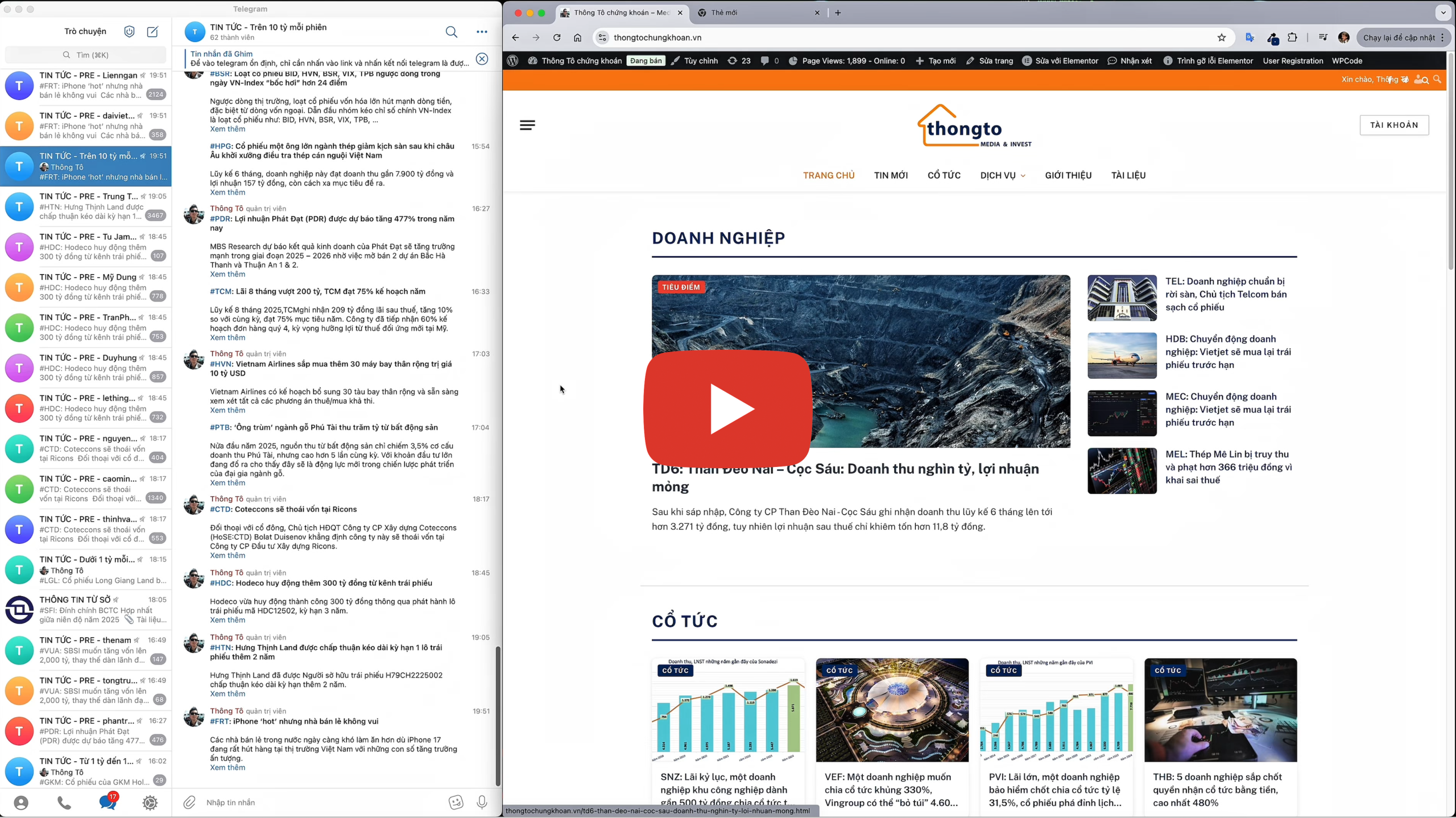 Tin tức cổ phiếu chia thành các nhóm: trên/dưới 10 tỷ, cổ tức, yêu thích, và toàn thị trường. Các chuyên mục tài chính, kinh tế có nhóm Telegram riêng. Cuối ngày, tổng hợp tất cả tin tức từ các chuyên mục gửi thành một bài viết đầy đủ trên nhóm.